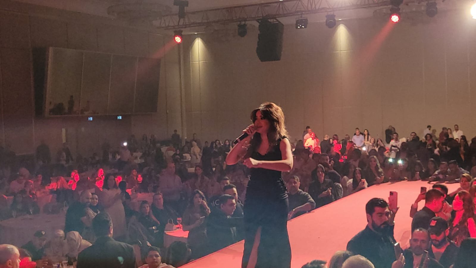 وخلال الحفل أعطت فرصة لشخص كويتي وغنى برفقتها وأشادت بصوته، وهذا إن دل على شيء على تواضعها.